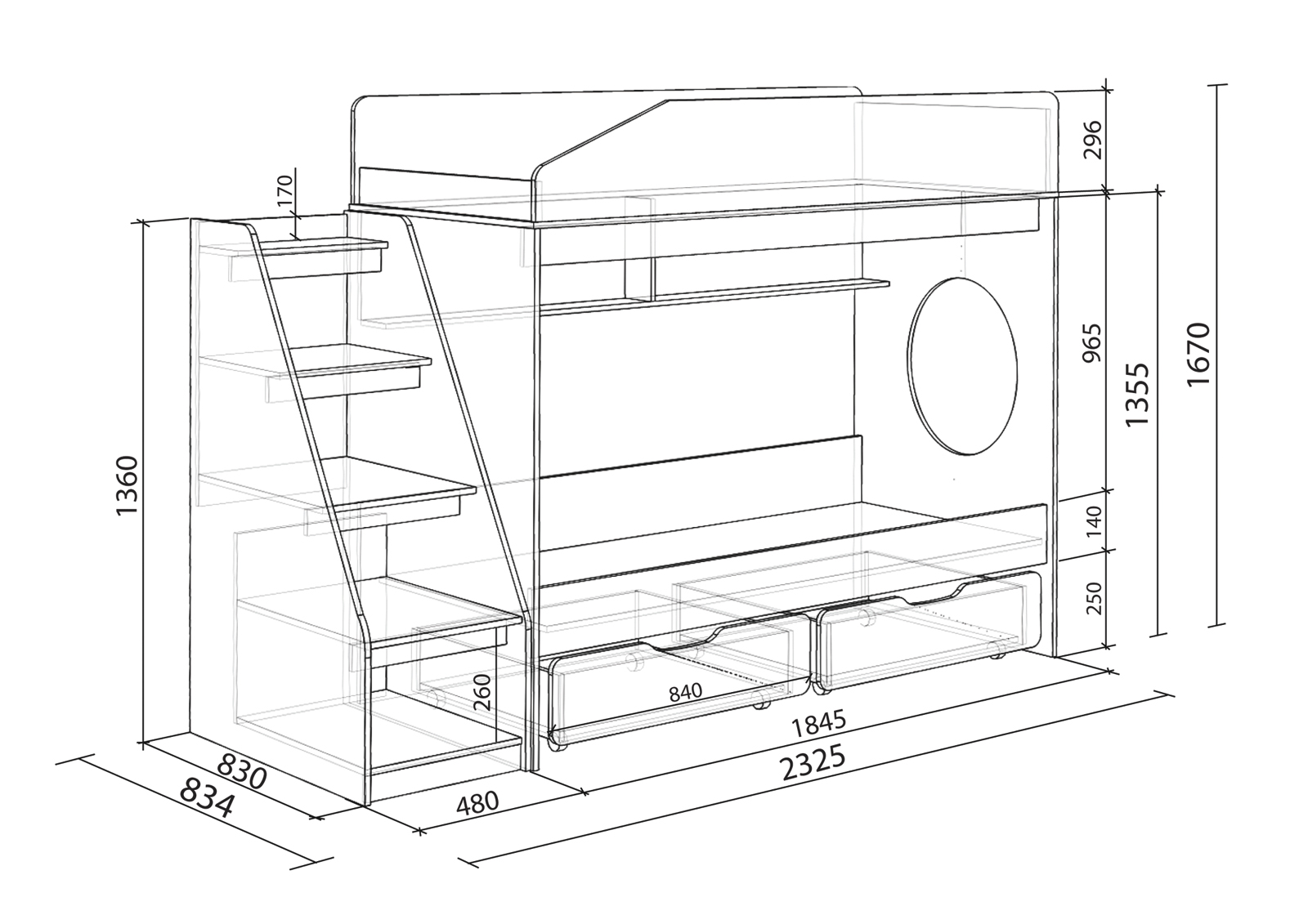 Бортик дополнительный Л-02 на 80 см для двухъярусной кровати