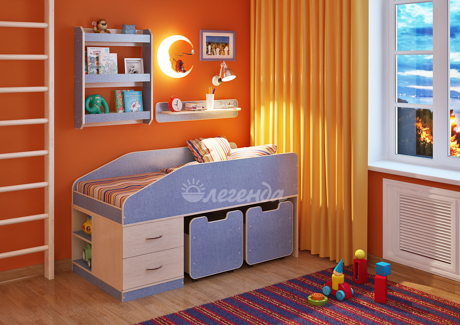 Детская комната Легенда №49: Кровать Легенда-8, стеллаж Л-01