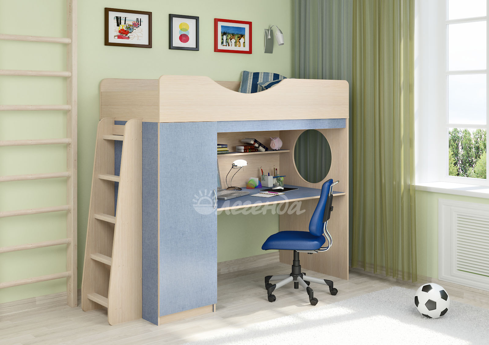 Кровать-чердак для мальчика Легенда-9.1 со столом, спальное место 180х80 см