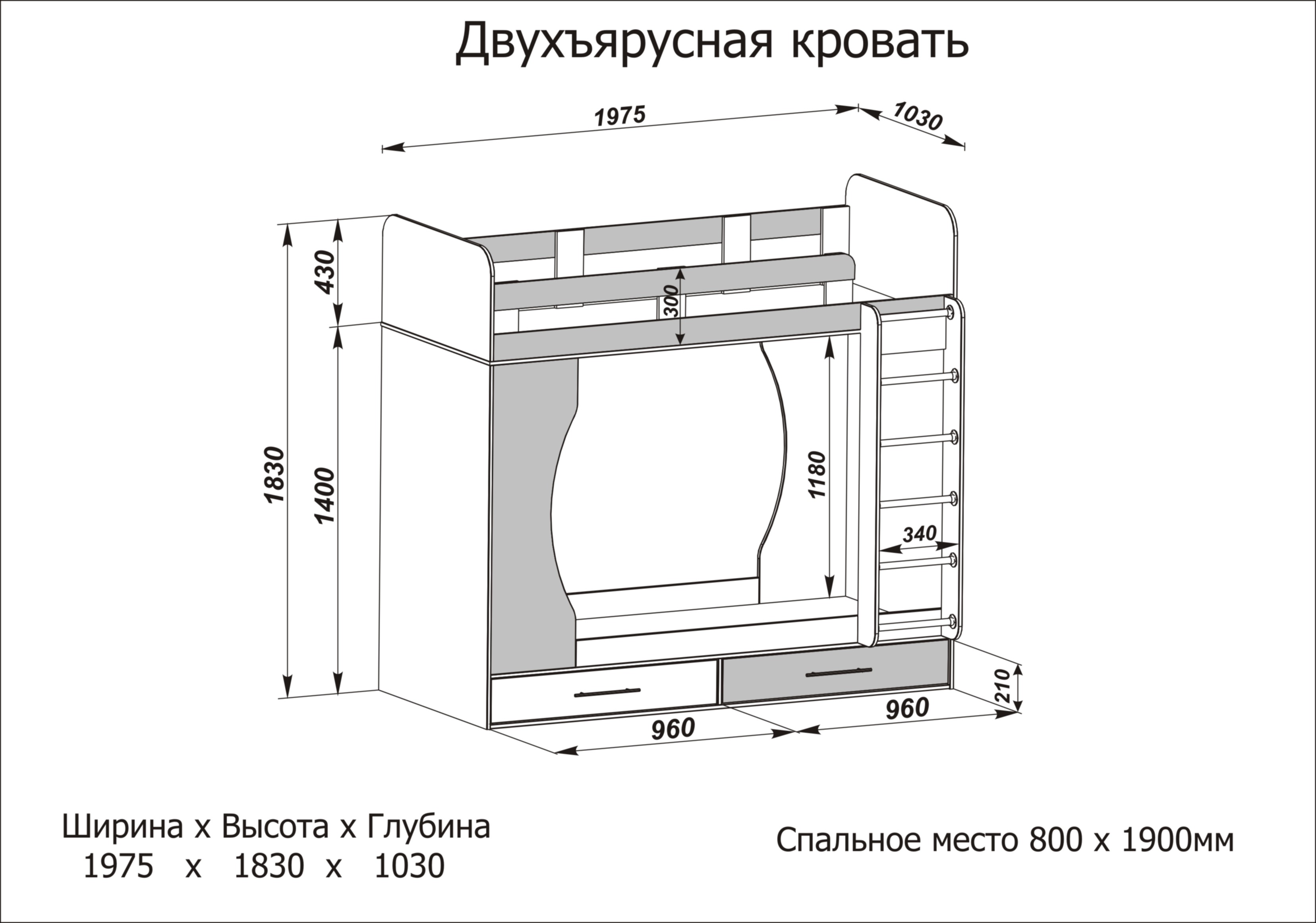 Двухъярусная кровать Карлсон (Дуэт 1), спальные места кровати 1900*800 мм. (арт. 14.711)