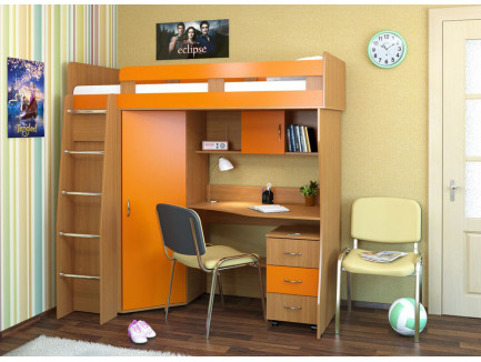 Кровать-чердак Карлсон М1 (арт. 14.710+14.710.06+14.301) со столешницей и тумбой, спальное место кровати 1860*700 мм.