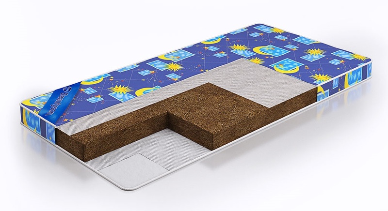 Детский беспружинный матрас на основе кокосового волокна. Эластичный тонкий матрас изготовлен только из экологически чистых материалов безопасных для детей. Одним из полезных свойств матраса является его воздухопроницаемость. Жесткость высокая. Чехол из хлопковой ткани, несъёмный