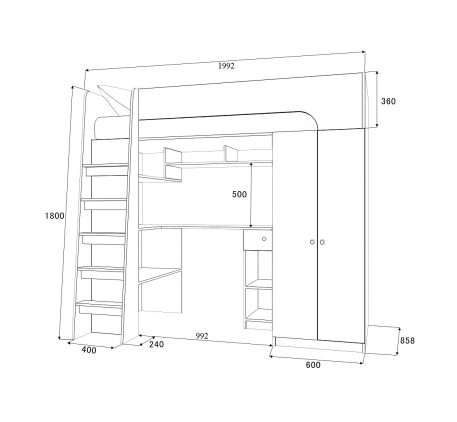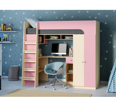 Детская кровать-чердак Астра-10 со столом и шкафом