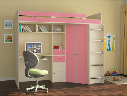 Мебельный комплекс можно заказать в цвете корпуса Дуб молочный с различными вариантами фасадов для мальчиков и девочек. За счет большого места для сна и высокой прочности, такая модель подойдет не только для детей, но и для подростков.