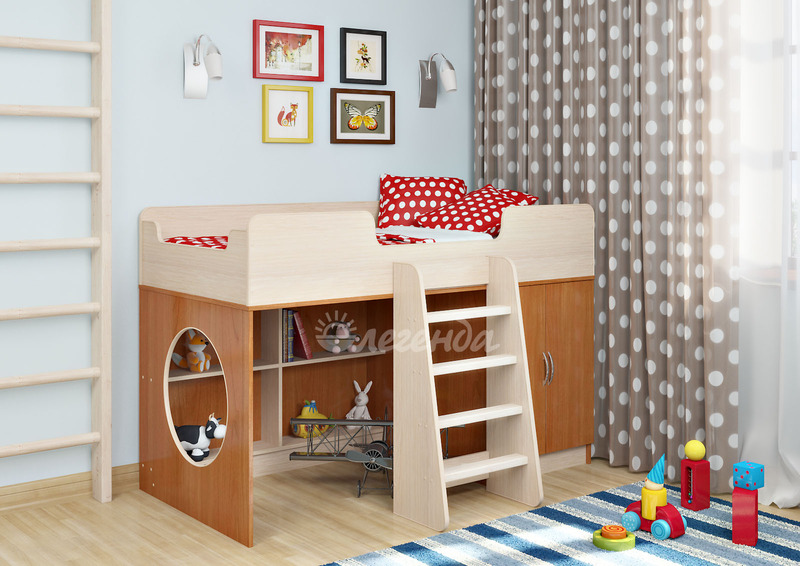 Кровать Легенда 2 заставило купить желание, за счет чердака сэкономить площадь детской комнаты. Мебель недорогая по цене. Низкое спальное место, шкаф с полками в комплекте. Ребенку 4 года, очень доволен. Интернет-магазин организовал доставку со склада фабрики в Москве на 2 день после заказа. ул. Планерная