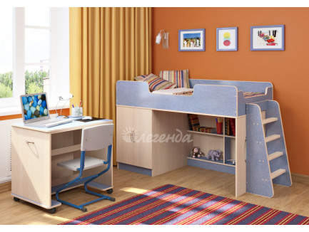 Детская кровать-чердак Легенда 2.2 со столом Л-02, спальное место 160х80 см